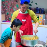 早午餐的鬆餅我們用富含omega-3的亞麻籽替代雞蛋,加上漂流木特製的手工豆漿,還有富含維生素A的胡蘿蔔,就能製作出鬆軟的健康胡蘿蔔鬆餅蛋糕,再加點巧克力提味,婦女們都大讚好吃,準備回家做給孩子們吃呢!純素炒旦我們特別跟來自英國的大朋友Paula取經,用大蒜、豆腐、薑黃等,成功做出了口感絕佳又有益健康的早午餐炒蛋,加上青椒、番茄等食材,色香味俱全!婦女們都很驚訝純素能做出這樣的料理!現代人普遍膳食纖維攝取不足,在特製的生菜沙拉中,Iven加入了新鮮的青花菜,美味又有抗氧化的營養!搭配自製的豆腐美乃滋、火龍果美乃滋,讓人食指大動,一口接一口!
